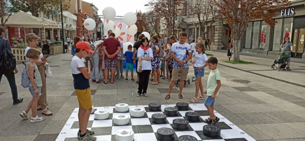 Огромной популярностью пользовалась площадка с гигантскими атомными шашками, игроки выстраивались в очередь, чтобы сыграть пару партий друг с другом.