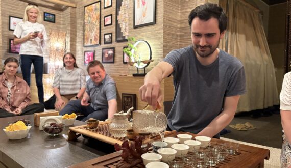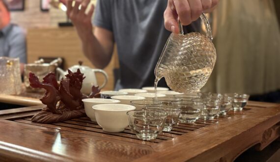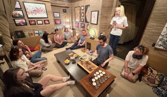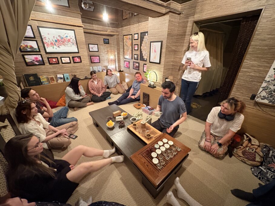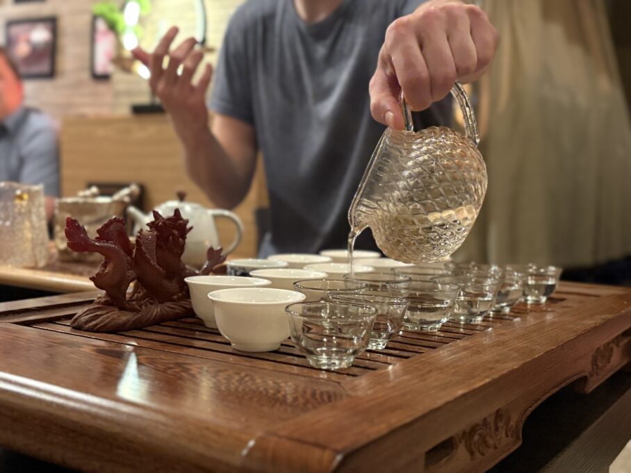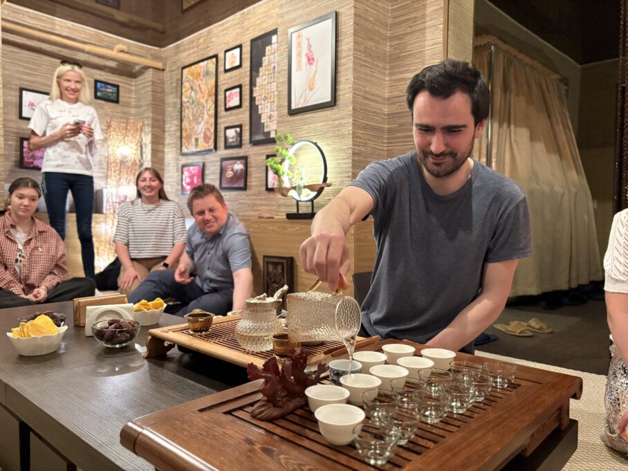 Мероприятие началось с мастер-класса от экспертов «Мойчай.ру». Гости учились правильно заваривать разные сорта — от улунов до пуэров — и дегустировали их, отмечая оттенки вкуса и аромата.