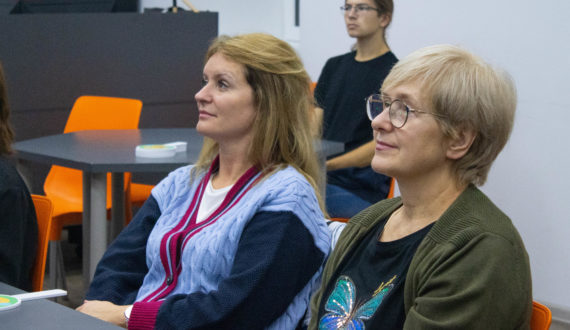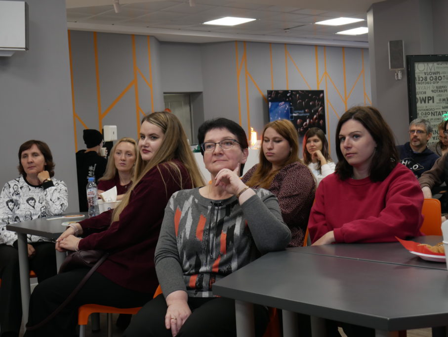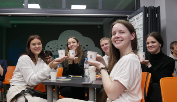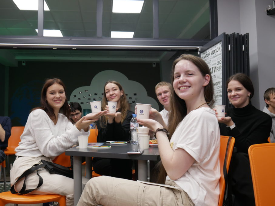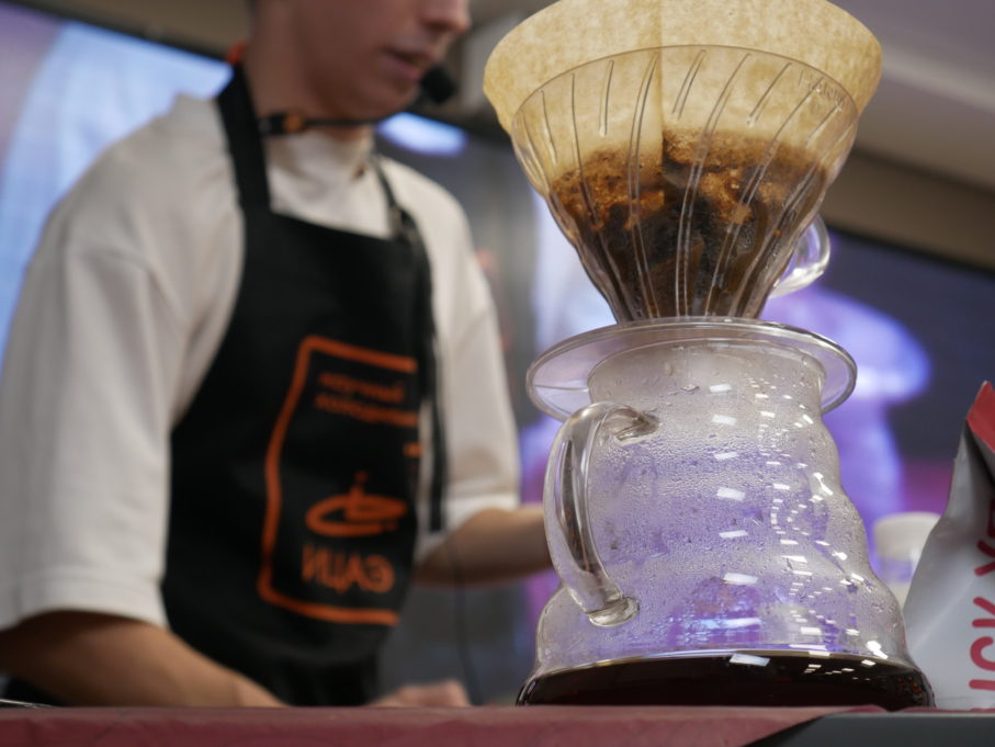 Перед началом телемоста гостей ИЦАЭ ждала дегустация кофе. В Курске гости попробовали напитки от Donut Bar – капучино, латте, американо, эспрессо. Бариста рассказал о тонкостях нагрева и взбивания молока в кофемашине, о правильной пропорции молока и эспрессо для каждого напитка, а также о том, какое зерно лучше использовать для различных видов заваривания кофе. В Санкт-Петербурге технолог Роман Богданов и бариста Михаил Петров наглядно продемонстрировали, как правильно заварить кофе в домашних условиях без кофемашины. Специалисты рассказали, как выбрать подходящий кофе и чем обычный кофе с молоком отличается от капучино.