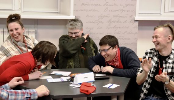 В рамках тематики февральского турнира участники могли прийти в одежде с красными элементами и подарить друг другу специальные научные «валентинки», которые можно было заполнить до начала или даже во время игры. Так, например, команда «Химики 43» из Кирова основательно подготовилась. Участники не только пришли в красном, соблюдая дресс-код, но и оформили свой стол светодиодными красными свечами. А послания с признаниями в симпатии или с приятными пожеланиями получили игроки в каждом центре.