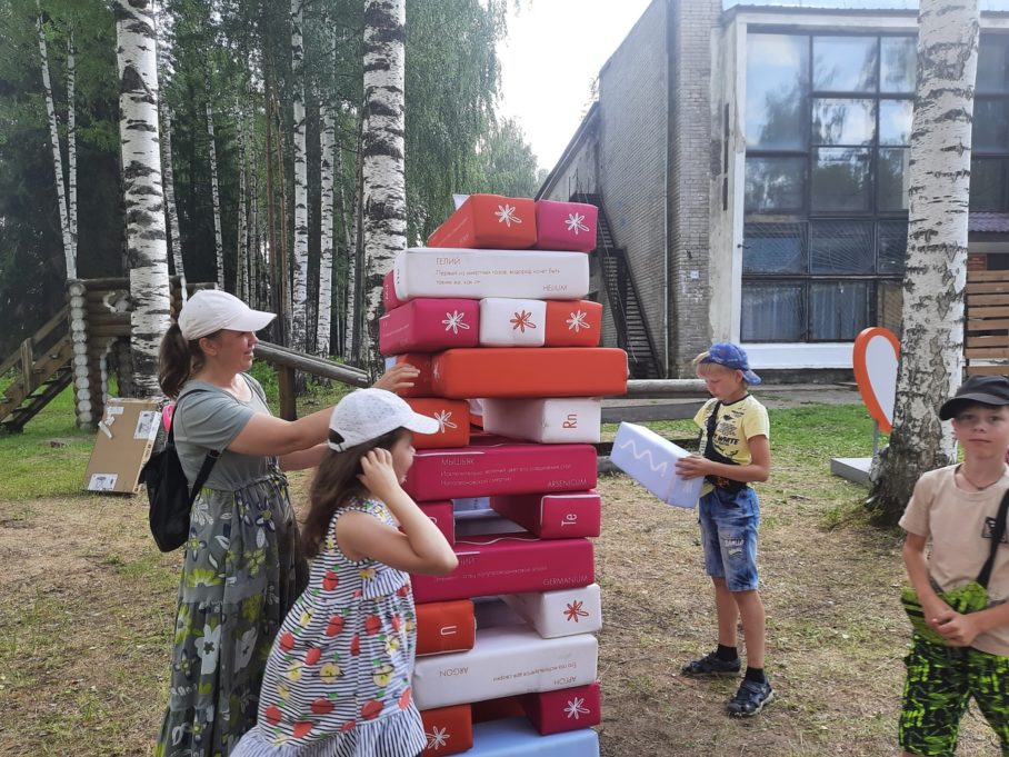 Гости праздника с удовольствием играли в физические шашки, где один участник – протон, а другой – электрон, выстраивали огромную дженгу, в которой каждый брусок – какой-то химический элемент.
