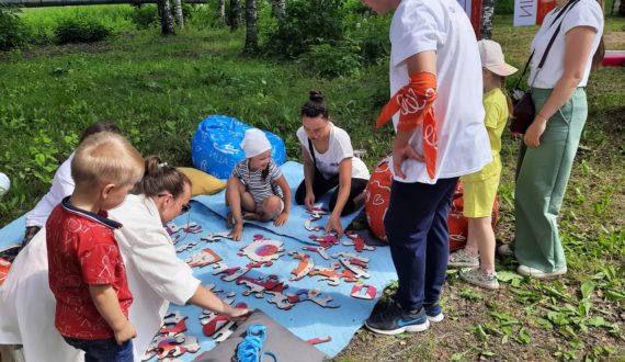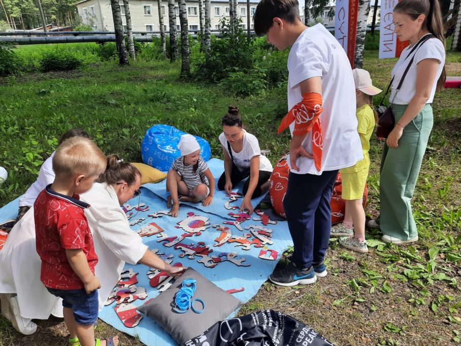 Больше всего детей собрала площадка «Молекулярный кольцеброс». Целыми семьями собирали огромный пазл ИЦАЭ, элементы которого имеют форму объектов и предметров из атомной промышленности – например, ветряка или градирни.
