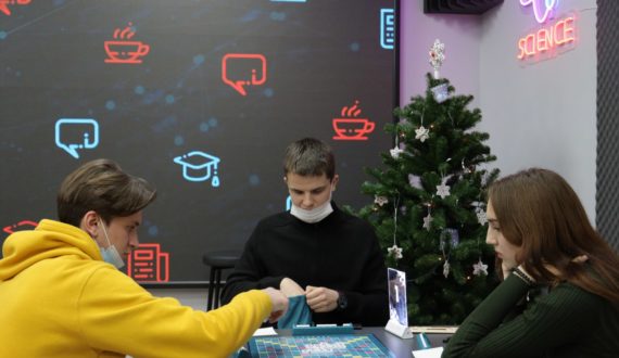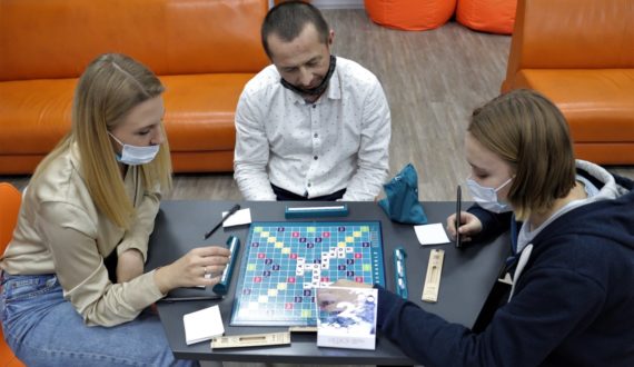 Вечер начался с турнира по интеллектуальной игре «Скрэббл». После быстрой жеребьёвки гости сразились в мастерстве составления слов в отборочном туре, после чего прошли несколько уровней турнирной сетки, где лучшие игроки боролись за победу. Победителем стала Вероника Литвинцева.