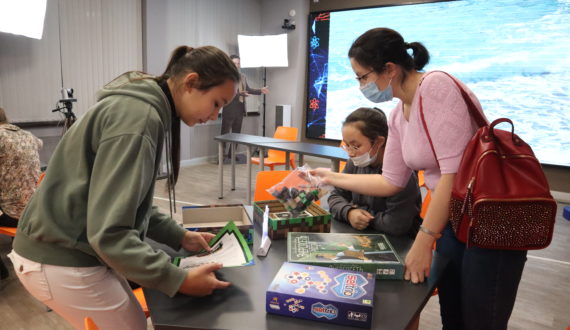 На традиционной экскурсии по экспозалу атомной отрасли взрослые и дети заглянули внутрь ПАТЭС «Академик Ломоносов», «провели» атомоходы по Северному морскому пути, измерили свой уровень радиации и даже собрали макет АЭС.