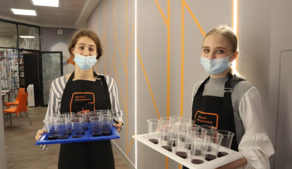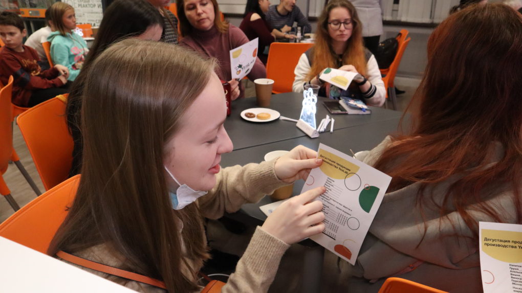 Сразу после лекции студенческий кулинарный клуб «YESLAB» провёл дегустацию для участников: все получили 7 видов разных напитков одинакового цвета и нужно было определить, опираясь только на обоняние и вкус, какого вида напиток находится в стакане: груша, апельсин, вишня, яблоко, гранат, виноград или персик. Многих людей запутало то, что цвет у всех напитков был одинаковый, трудно было отличить виноград от вишни и граната, апельсин был похож на персик, а яблоко перемешалось по вкусу с грушей.