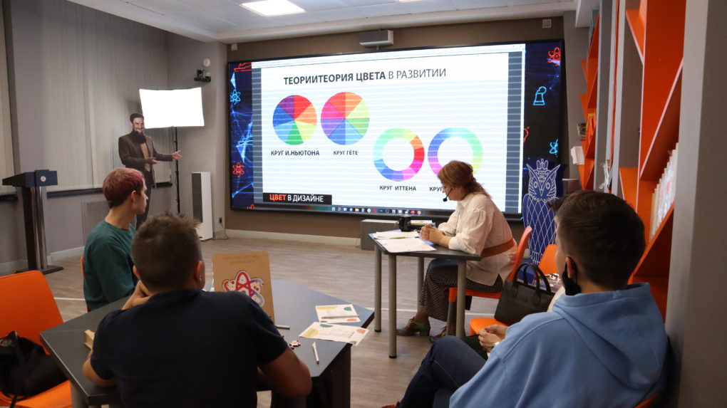 Кульминацией вечера стала лекция иллюстратора и графического дизайнера Натальи Гурковой, которая рассказала про теорию цвета, а также разобрала значение цвета в дизайне многих компаний.