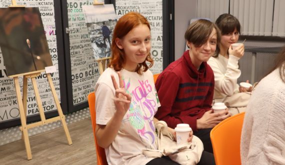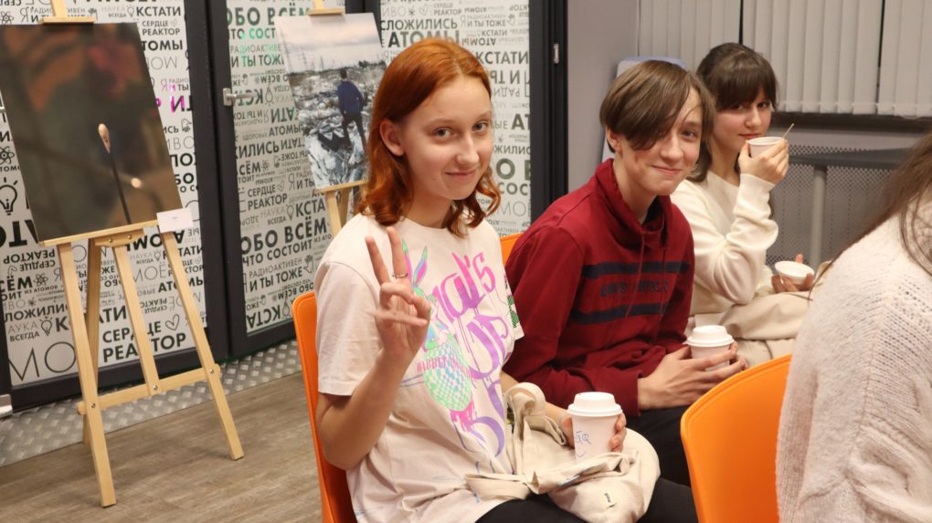 Вечер начался с открытия выставки «ПластМасса» петербургского фотографа Марии Никитиной. В своих работах она переносит классические живописные образы в мир одноразовых вещей. Студенты и школьники увидели взгляд фотохудожника на экологическую проблему через интерпретацию известных картин Врубеля, Климта, Мунка и других классиков. «Фотография – тот вид деятельности, который позволяет рассказать, о чём вы думаете, что хотите передать. Например, я просто не умею рисовать, поэтому – фотография», — объяснила Мария.  На память о встрече участники получили открытки с автографом автора.