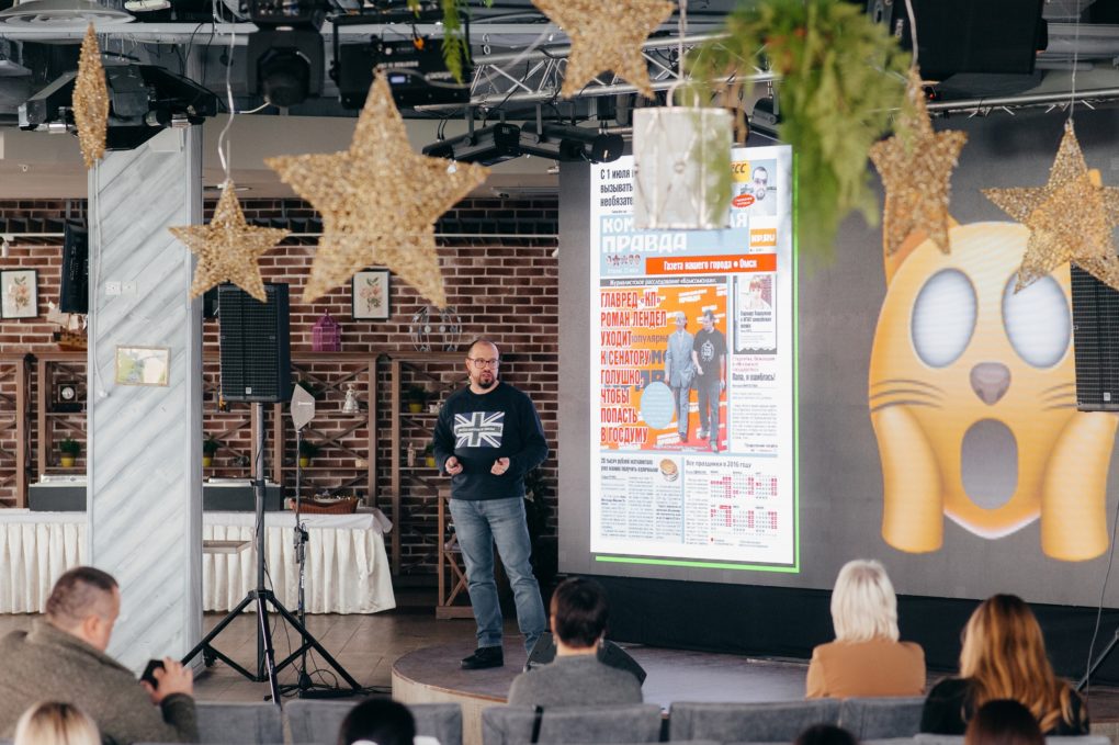 Первым выступил Богдан Кульчицкий, руководитель ресурсов 66.RU и РБК Екатеринбург. В своём выступлении он рассказал, как нативная реклама может обрести вторую жизнь и как на ней можно хорошо зарабатывать местным медиа.