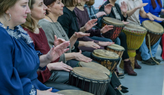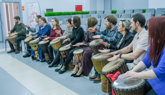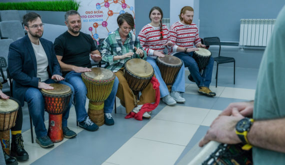 После выступления гостей прошёл мастер-класс по игре на барабанах, который организовал эксперт ИЦАЭ Александр Казаченко, кандидат химических наук, старший научный сотрудник, и.о. заведующего лаборатории химии и природного органического сырья Института химии и химической технологии СО РАН.