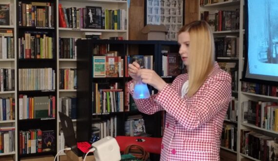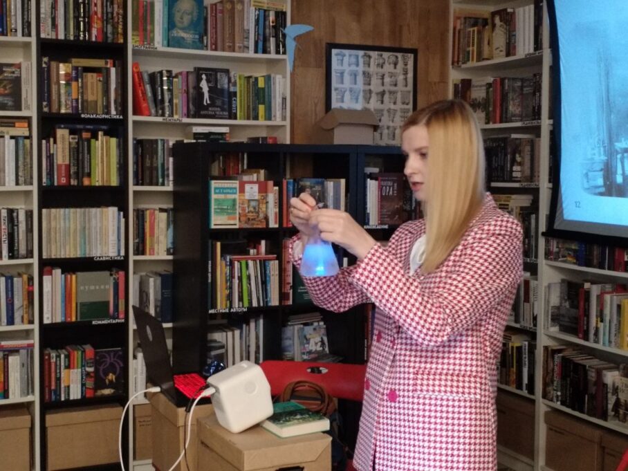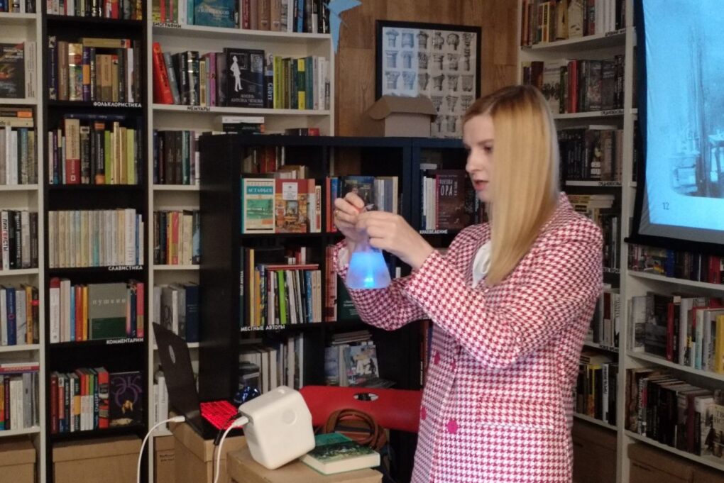 Завершился вечер «Научными чтениями». Вероника Головчиц, театральный журналист, блогер, автор каналов «Мемуары с бенуара» и «Прочитано-продано» рассказала о книге Марис Уикс «Театр человеческого тела», из которой читатели могут узнать, как устроено тело человека, как работают все его органы: от клеточного уровня до уровня систем. Анастасия Иванова, менеджер ИЦАЭ Красноярска, подготовила в качестве рекомендации две книги, которые рассказывают о женщинах в науке: «52 упрямые женщины» Рэйчел Свейби и «Женщины в науке. 50 женщин, изменивших мир» Рэйчел Игнатовски.