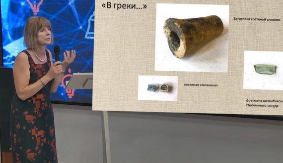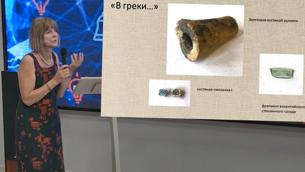 О работе смоленской экспедиции на территории Гнёздовского археологического комплекса – самого большого эпохи Древнерусского государства – рассказала руководитель экспедиции, кандидат исторических наук, заведующая сектором отдела археологических памятников ГИМ Вероника Мурашёва.