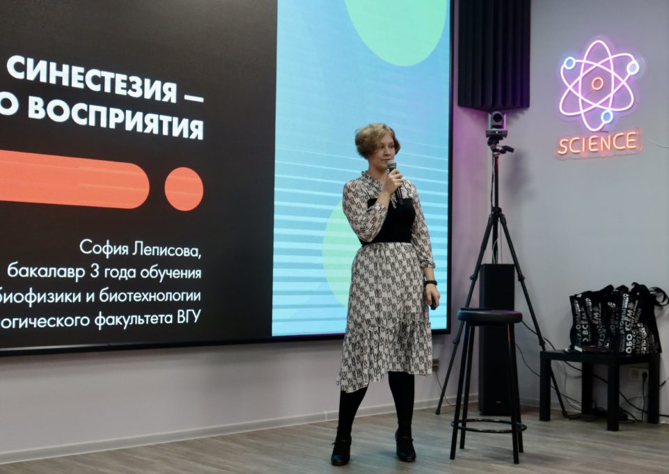 В завершение София Леписова выступила на тему «Синестезия – мир за гранью восприятия» и постаралась разобраться с этим интересным феноменом, при котором раздражение в одной сенсорной или когнитивной системе ведёт к автоматическому, непроизвольному отклику в другой сенсорной системе.