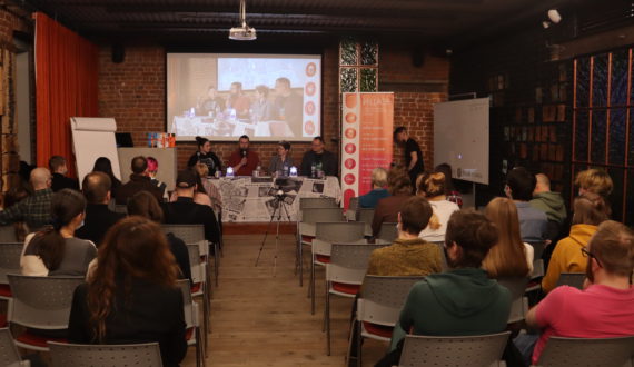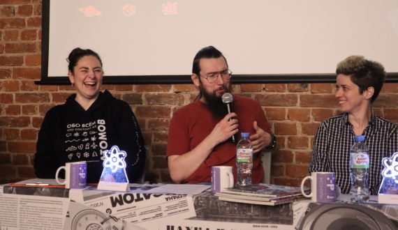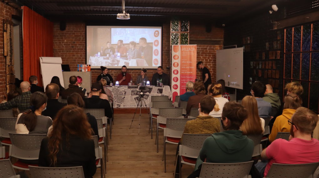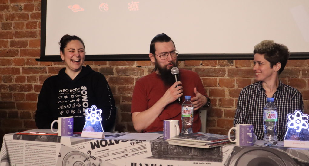 25 ноября Информационный центр по атомной энергии (ИЦАЭ) Санкт-Петербурга провёл четырнадцатый выпуск устного журнала «Язык Эйнштейна». Экономист, математик и научный журналист обсудили новости науки, начиная космическими угрозами и заканчивая нейросетями, которые генерируют неестественные зрачки несуществующим людям. По традиции, устный журнал прошёл в коворкинге «Ясная поляна» в центре города.