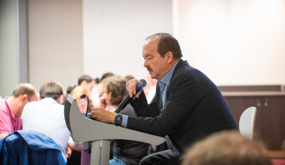 «Атомные технологии помогают миллионам людей во всём мире. Это не только производство электроэнергии на АЭС. Росатом сегодня – это атомный ледокольный флот и развитие Северного морского пути, разработка суперкомпьютеров, наработка изотопов для ядерной медицины, создание композитных и других инновационных материалов, стерилизация медицинской продукции и обеззараживание семян и продуктов питания, информационные технологии и дата-центры, системы безопасности и другие наукоёмкие технологии», — сказал ведущий, приветствуя финалистов VI Всероссийского синхронного чемпионата по игре «Что? Где? Когда?» среди команд Госкорпорации «Росатом» и её организаций.