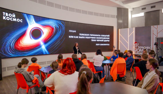 Далее началась лекция «Телескоп горизонта событий или как было получено изображение тени черной дыры». Спикером выступил Пётр Землянуха, сотрудник отдела радиоприемной аппаратуры и миллиметровой радиоастрономии Института прикладной физики Российской академии наук. Участники лекции познакомились с концепцией горизонта событий черной дыры и тем, как удалось запечатлеть её «тень» – регион, где гравитация столь велика, что даже свет не может из неё вырваться. Также зрители узнали, почему исследование черных дыр заслужило Нобелевскую премию по физике в 2020 году.