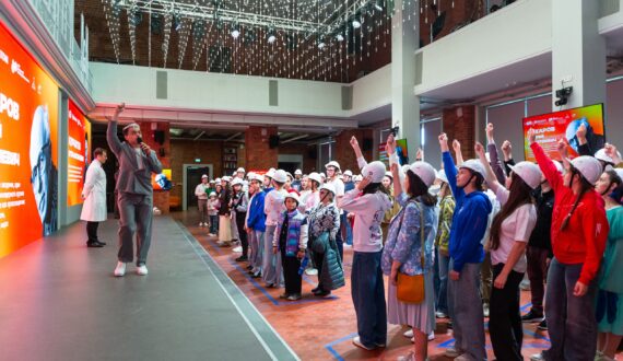Затем школьники «Движения первых» представили иммерсивную постановку «Герои далёкие и близкие», посвящённую выдающимся личностям атомной эпохи.