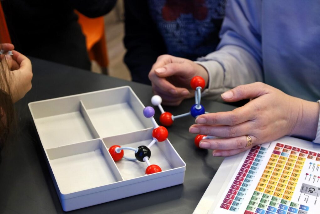 На этапе «Молекулярная сборка» участники работали с объёмными моделями, собирая молекулы из атомов и наглядно разбирая их структуру. Финальный раунд стал проверкой химического кругозора и логики: из символов элементов таблицы Менделеева команды составляли осмысленные слова.