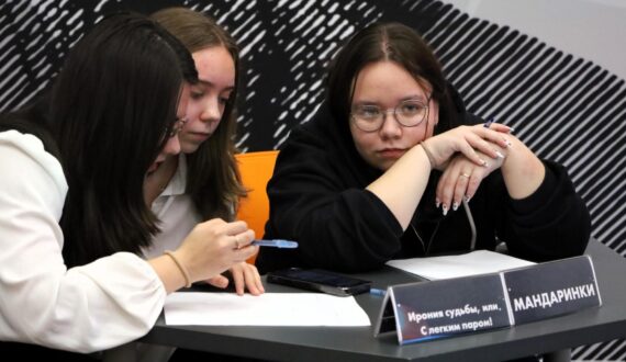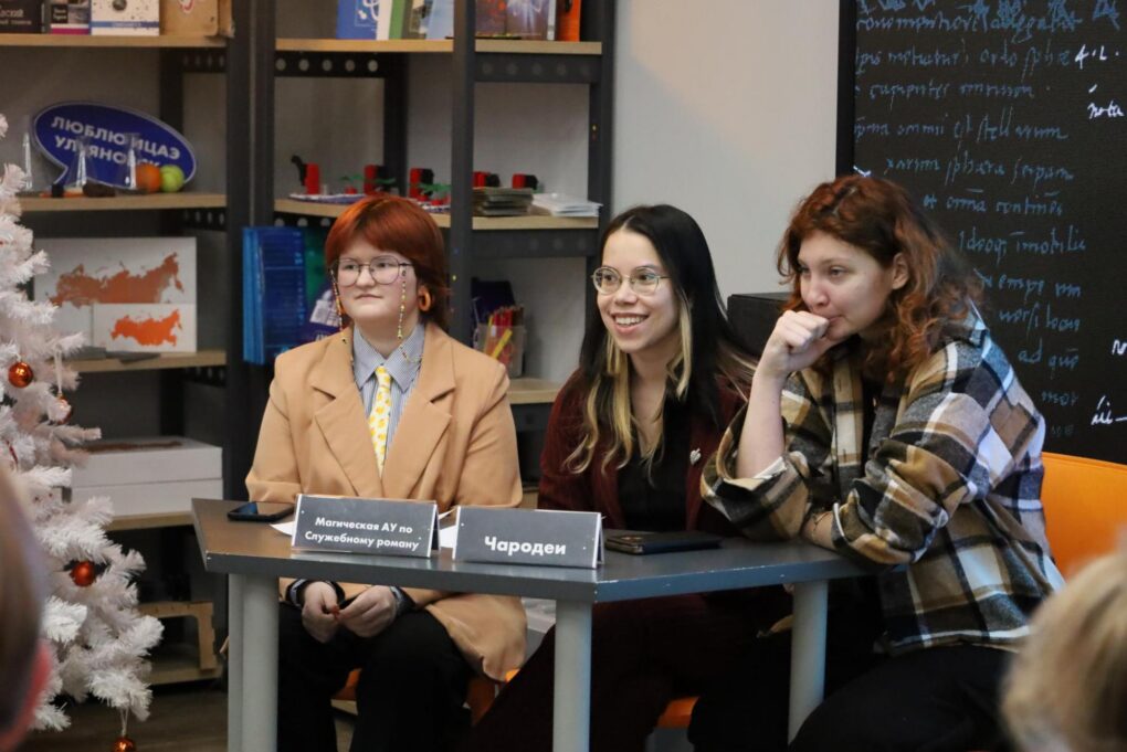 Вечер начался с тренировочной игры дебат-клуба «Убеди меня». Участники — команды «Chemdivas», «Магическая АУ по “Служебному роману”» и «Мандаринки» — дискутировали о том, какой фильм можно считать самым новогодним: «Ирония судьбы, или С лёгким паром!», «Карнавальная ночь» или «Чародеи».