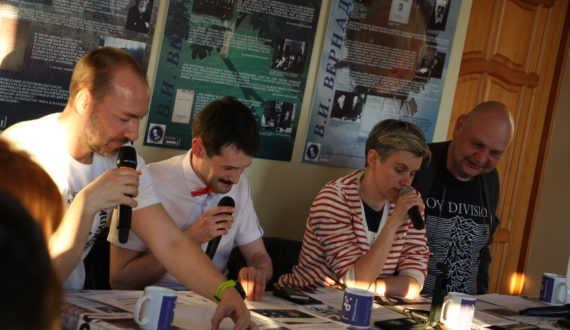 «Научную компанию» кандидату физико-математических наук составили нейробиолог, психолог и старший преподаватель Института живых систем БФУ им. И. Канта Ирина Шалагинова, а также историк философии, доктор философских наук Владас Повилайтис.