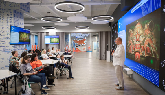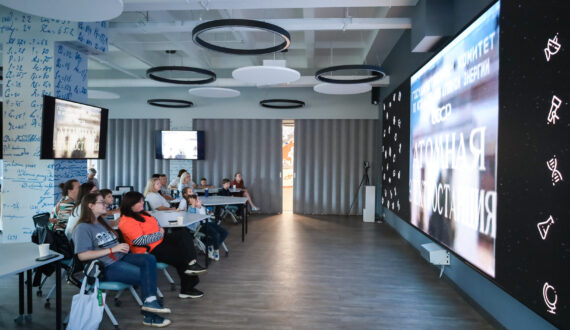 После кинопоказа лекцию «Мирный атом» прочитал для посетителей Александр Мамкин — кандидат педагогических наук, ведущий сотрудник группы сопровождения музейного комплекса АО «ГНЦ РФ-ФЭИ». Лекция посвящена истории и современному состоянию атомной энергетики в России, включая ключевые этапы становления отрасли.