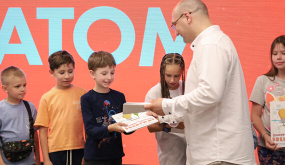 «Приходим уже на третье мероприятие из серии, посвящённой юбилею атомной отрасли. Каждое из них очень интересное. Сегодня больше всего понравился фильм «На Родине атомной», потому что там рассказывалось про Обнинск и нашу АЭС. Появилось больше понимания о значимости нашего города для страны и мира. Лекция Александра тоже была очень интересная, впрочем, как и всегда. Он так интересно рассказывал про историю атомной энергетики, про Обнинск и про то, как первая АЭС повлияла на развитие отрасли. Ещё он рассказал про современные АЭС и про будущее атомной энергетики, это заставило задуматься о многом. А еще круто, что он ответил на все наши вопросы. Было интересно узнать, надолго ли хватит запасов урана, сроки строительства АЭС и про разные типы реакторов. И, конечно, мастер-класс по изготовлению значков был просто супер. Теперь у меня есть классный значок с Курчатовым. Советую всем, кто хочет узнать больше про эту тему, обязательно сходить на такие мероприятия. Это намного интереснее, чем читать учебник, тем более что впереди ещё несколько мероприятий из этого цикла», — поделилась впечатлениями постоянная гостья ИЦАЭ Анна Сазонова.
