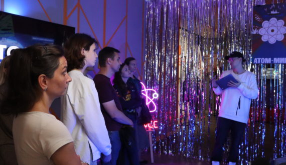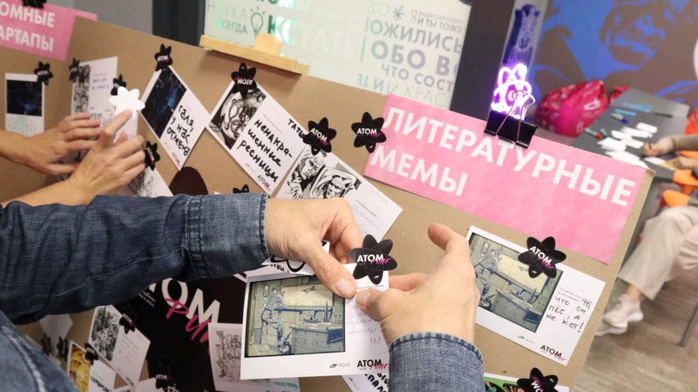 Перед началом научного телемоста гости ИЦАЭ Санкт-Петербурга смогли посетить музейную экспозицию, сыграть в настольные игры от сети ИЦАЭ, а также придумать свои научные стартапы и литературные мемы в стиле «атомпанка». А гости ИЦАЭ Курска увидели экспозицию посвященную «Атому в искусстве», а также узнать, как деятели искусство предсказали развитие атомной промышленности.