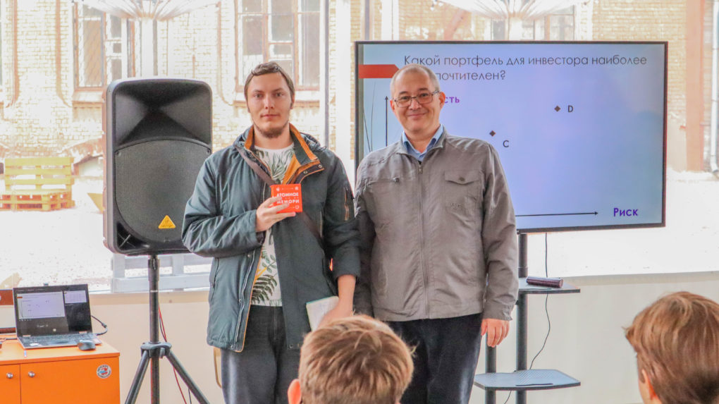 После лекции состоялась викторина, в которой зрители оценивали правдивость или ложность фактов об экономике и рациональном потреблении. За каждый правильный ответ участники получали по 1 условной атомной единице, которые после мероприятия можно было обменять на призы от сети ИЦАЭ.