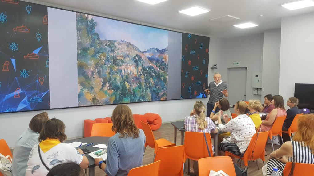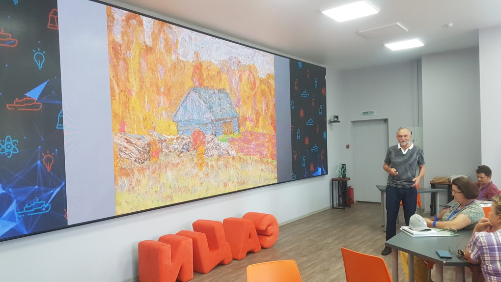 Авторский семинар Леонида Зорина для жителей Владимира, педагогов и участников пленэра был посвящён композиции как способу подачи изобразительного материала. Слушатели обсудили с экспертом, как компоновка элементов создаёт ритм, динамику картины, как сохранить цельность и единство подачи материала и создать у зрителя эмоциональное впечатление от картины. Для педагогов семинар стал частью курсов повышения квалификации. По итогам прохождения курсов участники получат свидетельства государственного образца, вручение которых пройдёт в ИЦАЭ 21 августа.