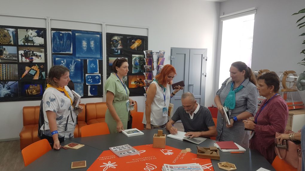 Все посетители семинара смогли познакомиться с работами художницы, сотрудницы Музейного центра «Площадь Мира» Анастасии Безвершук из Красноярска, а также с фотографиями атомных объектов и фотозарисовками с «Атомного велопробега», сделанными системным администратором ИЦАЭ Владимира Михаилом Токаревым.