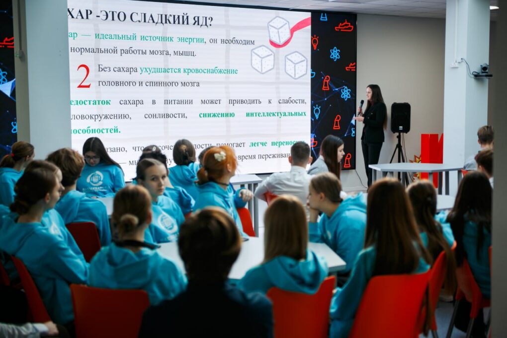 В рамках проекта прошла лекция «Не про ЗОЖ, а про вкусную науку о нашей тарелке». Марина Уложинова, кандидат технических наук, старший научный сотрудник РУП «НПЦ НАН Беларуси по продовольствию» развеяла главный миф о здоровом питании. Спикер научно доказала, что «полезно – не значит противно» на примере привычных нам блюд. Школьники узнали, что тот же борщ или котлета могут быть как кулинарным шедевром, так и источником важнейших микроэлементов.