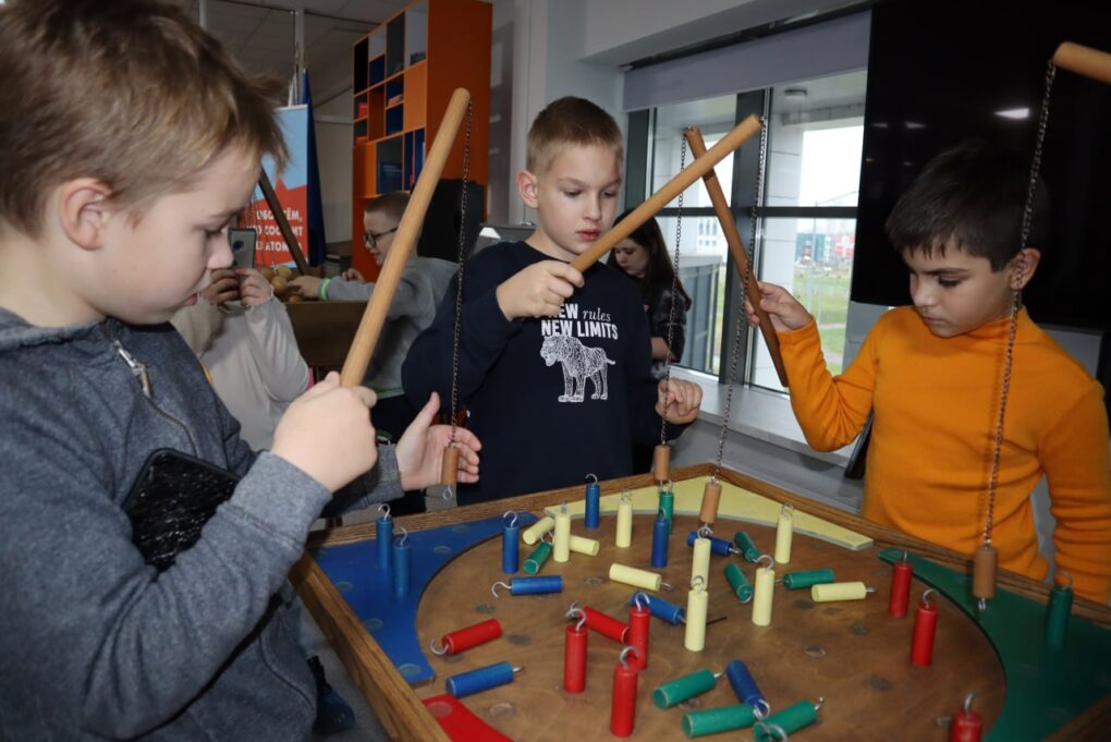 Кроме этого, ребята смогли проверить свою логику и пространственное мышление, сыграв в инженерные игры. Знания в том, что такое механическое равновесие и как оно работает пригодились во время игры в «Равновесие», а хорошая память была подспорьем в игре «Вспомни всё». С помощью таких игр, как «Галактика», «Графитовая кладка» и «21 шарик» каждый смог погрузиться в мир физики и математики.