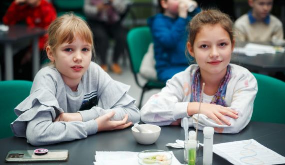 В рамках проекта для младших школьников, прошёл мастер класс «Выделение ДНК из фруктов». Провели мероприятие сотрудники Института биофизики и клеточной инженерии НАН Беларуси Алла Мисюкевич, научный сотрудник и Андрей Смирнов, младший научный сотрудник. Эксперты научили ребят выделять ДНК из фруктов в домашних условиях. «ДНК – молекула, в которой закодирована вся информация, определяющая то, каким будет организм, будь то человек или, например, помидор. Она хранится в каждой клетке любого живого организма», — отметила Алла Мисюкевич. В практической части занятия ребята опытном путём выделили ДНК из банана и киви.