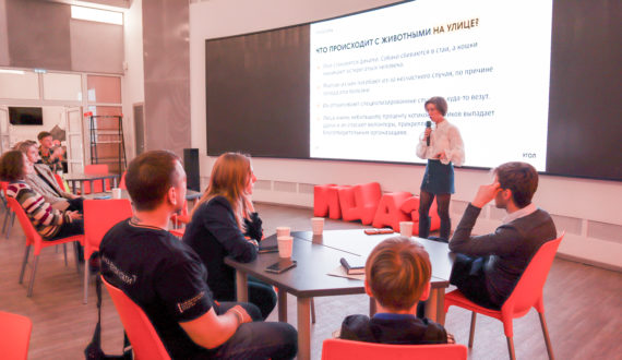На «ИЦАЭ OPEN: пушистый атом» в ИЦАЭ Нижнего Новгорода 28 ноября зрители узнали, как правильно заботиться и ухаживать за друзьями нашими меньшими. Вечер начался с документального фильма о буднях нижегородского проекта помощи бездомным животным «Угол НН». Фильм рассказывает о программе «Временный дом», его участниках и помощи, которую может оказать организация. «Угол НН» — это некоммерческий проект помощи кошкам и собакам. Это новый формат помощи, в котором участники помогают животным найти своих будущих хозяев через благотворительную программу.