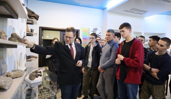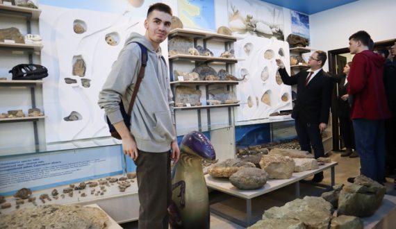 Следующей остановкой стал Музей естествознания. Зрителям была продемонстрирована экспозиция «Каменный лес» — собранные остатки окаменелой древесины. В палеогеновый период на территории Среднего и Нижнего Поволжья располагалось эпиконтинентальное море с многочисленными островами, покрытыми лесами. «Из палеогеновых отложений местонахождений Саратов (Алтынная гора), Еремеевка, Камышин, Привольская, Шиханы и других известны остатки более 30 видов каштанодуба, магнолии, литсеи, калины, оксикарпии и других форм», — начал свою экскурсию Сергей Мосолкин, кандидат исторических наук, доцент кафедры истории и политологии СГТУ им. Ю.А. Гагарина. Сергей рассказал о крупных рептилиях того времени, что проживали в окрестностях Саратова, а это ихтиозавры, плезиозавры, мозазавры, птеродактили, тираннозавры и другие. Зрители увидели остатки позвонков, черепов и другие находки музея. Также во время экскурсии участники познакомились с историей экспонатов от древнейших (обломок Сихотэ-Алиньского метеорита) до современных (строительные пески). Особую заинтересованность вызвал один из разделов экспозиции музея, посвященный изучению деградации и омертвению городов мира. Экскурсовод продемонстрировал различные экспонаты, начиная с книг о мёртвых городах, фотографий, сделанных в самих городах, демонстрирующих степень разрушения поселений, и заканчивая образцами минералов и горных пород, привезённых из таких мест. Основой музейной коллекции стали более полутора тысяч образцов, собранных в разные годы заведующим музеем, профессором Олегом Смилевцом, а также ряд образцов из коллекции заведующего кафедрой геоэкологии и инженерной геологии Алексея Иванова и доцента кафедры ГИГ Ивана Яшкова.