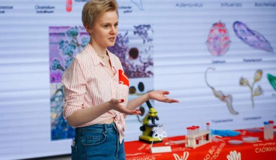 Анна Барейко рассказала школьникам о микроорганизмах, которые делают пищу не только полезной, но и вкусной. Ребята узнали, какие микроорганизмы встречаются в природе и как они используются человеком, а также познакомились поближе с некоторыми из них в практической части занятия.