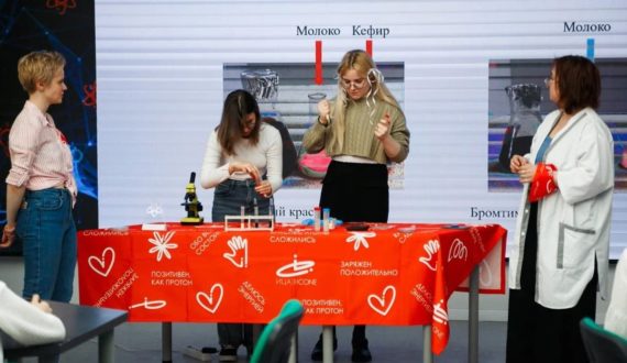 Карина Кантор помогла школьникам в ходе эксперимента оценить активность некоторых микроорганизмов. В одной из чашек Петри ребята наблюдали активность бифидобактерий, основных «производителей» молочной кислоты и ароматных веществ. На практике участники мероприятия смогли опытным путём изучить свойства и особенности микроорганизмов, которые присутствуют в кефире и чайном грибе.