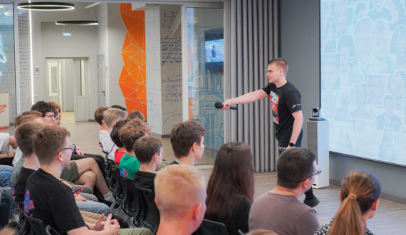Первым выступил Никита Мелега — специалист в сфере IT, председатель студенческого научного общества, ведущий проектов по электронике и программированию в VR-среде, соответственно Unreal Engine. В своих мемах Никита раскрыл некоторые тонкости работы с виртуальной реальностью.