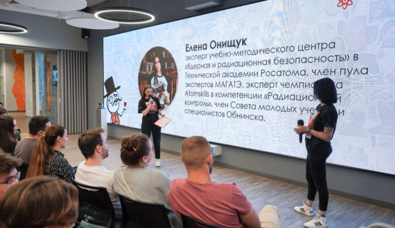 Завершала вечер Елена Онищук – эксперт УМЦ «Ядерная и радиационная безопасность» в Технической академии Росатома, член пула экспертов МАГАТЭ, эксперт чемпионата Atomskills в компетенции «Радиационный контроль», член Совета молодых ученых и специалистов Обнинска. а также фанат Игоря Васильевича Курчатова.