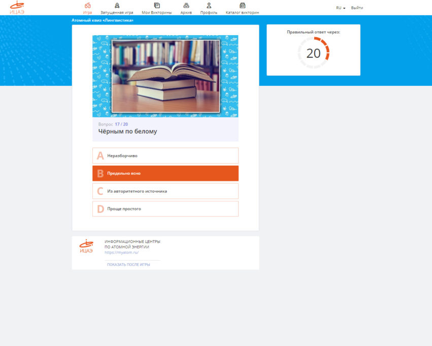 27 марта Информационные центры по атомной энергии (ИЦАЭ) Владимира и Саратова провели атомный квиз на тему «Лингвистика». Участники квиза проверили себя на знание фразеологизмов.