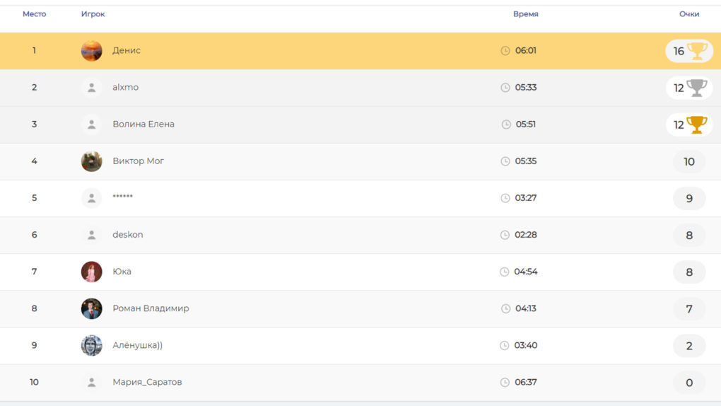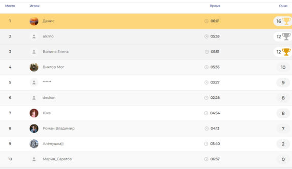 Победитель был выбран по двум критериям – количеству правильных ответов и времени, затраченному на них. Им стал Денис Горшков из Калининграда. Второе место занял Алекс Мостовой из Владимира, а третьей стала Ирина Владимирова из Москвы.