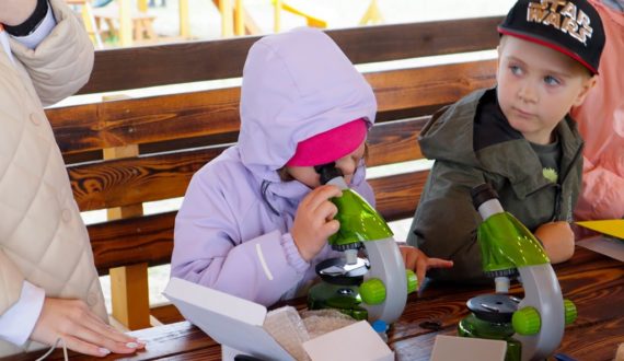 Третья станция «Микромир» перенесла детей в мир лаборатории. Лапки мух, хоботок комара, шерсть животных и различные части растений рассмотрели команды под микроскопом, а также научились готовить препараты для микроскопа в полевых условиях. По итогам квеста все команды унесли с собой папки гербария и новые знания.