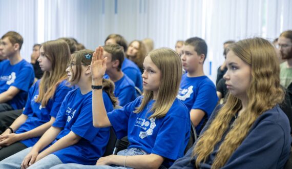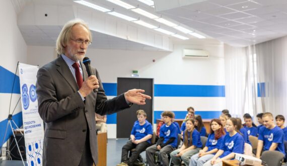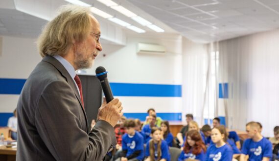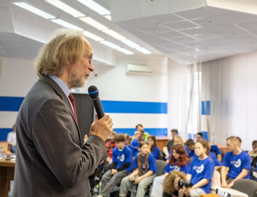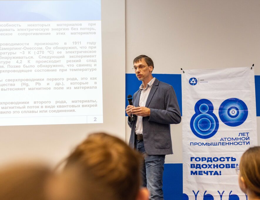Владимир Решетов рассказал школьникам о научных открытиях, которые изменили мир, начиная с изобретения колеса в период 3500–4000 лет до н. э. до создания искусственного интеллекта современности. В своей лекции он говорил об участии Росатома и исследовательских институтов в разработке квантовых компьютеров: «Россия входит в тройку лидеров по созданию квантовых компьютеров, уступая лишь США и Китаю. Наша страна ведёт разработки по созданию таких компьютеров, работающих на сверхпроводниках, ионах, нейтральных атомах и фотонах, которые считаются приоритетными для развития квантовых вычислений». Упомянул эксперт и другие исследования, открытия, научные работы, которые были настоящим прорывом в своё время: управляемый термоядерный синтез, покорение космоса, лазеры, вычислительные машины и роботы. После лекции ребята смогли задать интересующие вопросы и пообщаться с профессором.
