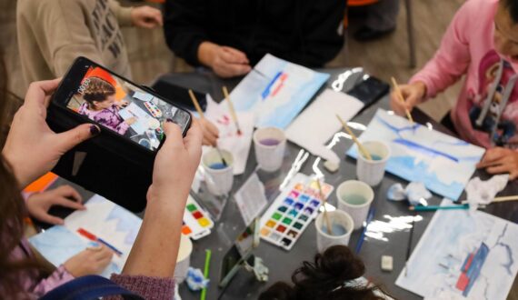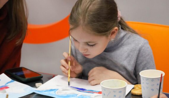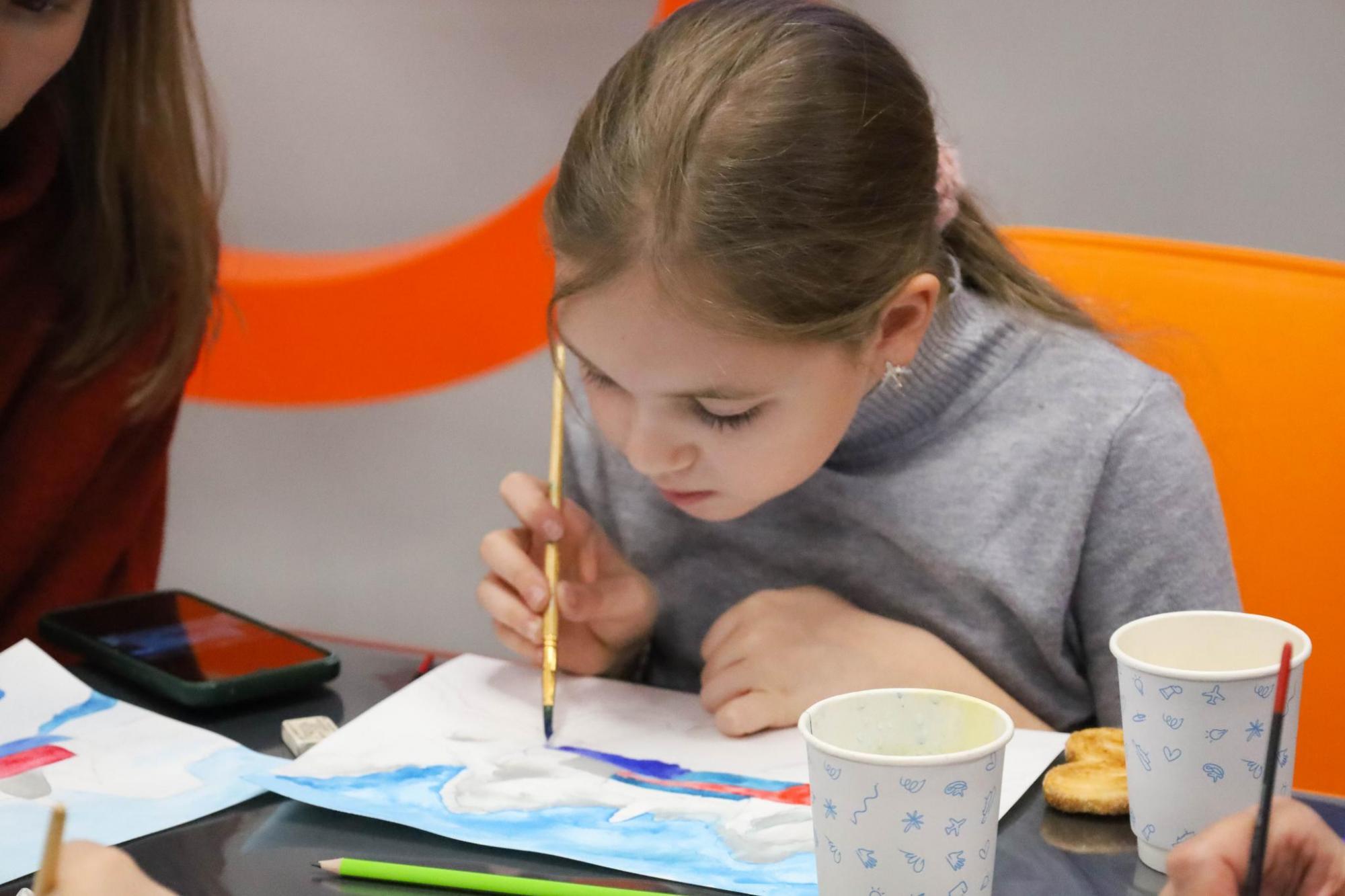 Вечер начался с мастер-класса по акварельной живописи, который провела старший научный сотрудник Ульяновского областного художественного музея Арина Чекушкина. Участники создавали арктический пейзаж с ледоколом — пробовали мягкие цветовые переходы, передавали фактуру льда и игру света на воде.