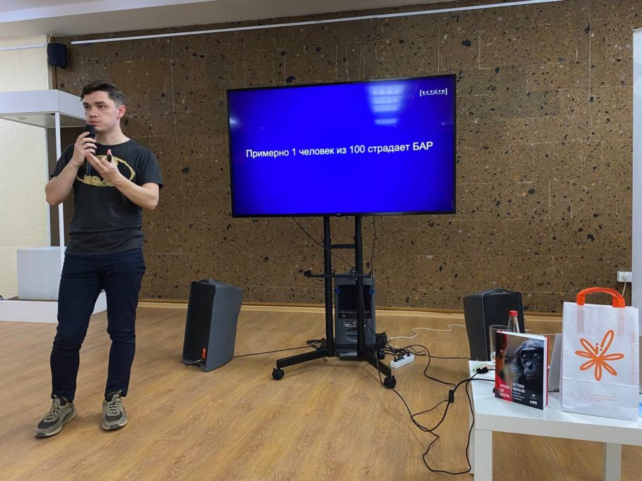 В этот же день Виктор Лебедев прочёл еще одну открытую лекцию – «Проезжая по кругу: от мании к депрессии и обратно», в которой речь шла о таком хроническом психическом заболевании, как биполярное аффективное расстройство. Слушатели узнали, что у пациентов, страдающих БАР, наблюдаются чередующиеся эпизоды болезненно повышенного (мания/гипомания) или пониженного настроения (депрессия). «Условно говоря, плохие периоды сменяются хорошими. В настоящее время все больше людей получают этот диагноз – примерно 1 человек из 100», – подчеркнул спикер. Далее Лебедев подробно остановился на симптомах каждой из стадии «биполярки» – депрессии, мании и гипомании.