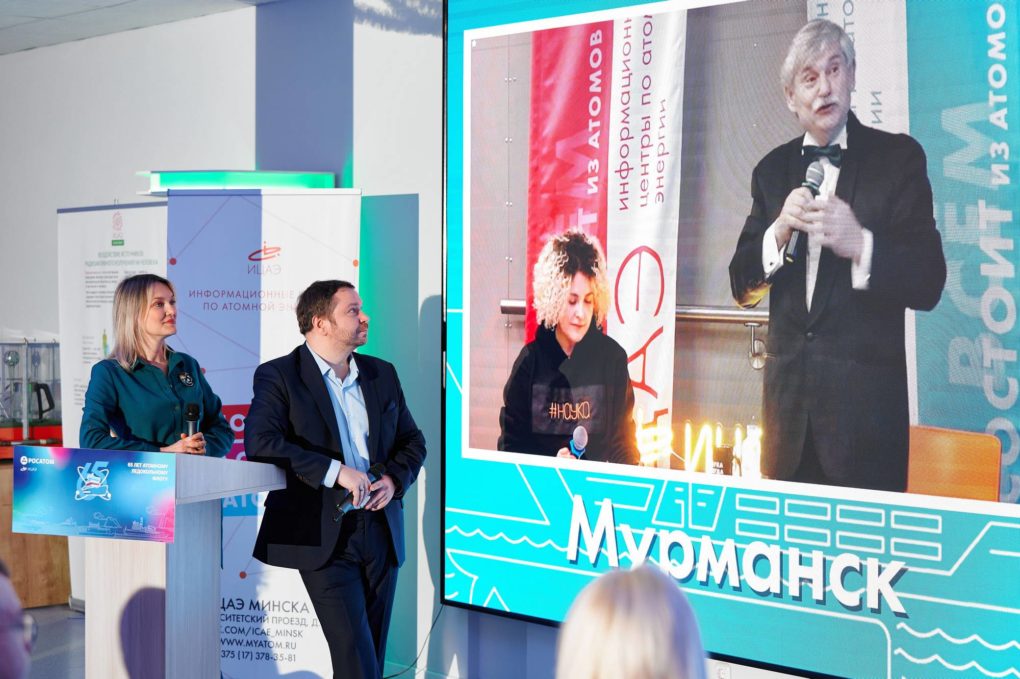 В честь праздника был организован телемост между Информационными центрами по атомной энергии Мурманска и Минска. Гости минского ИЦАЭ присоединились к поздравлению единственного в мире атомного ледокольного флота!