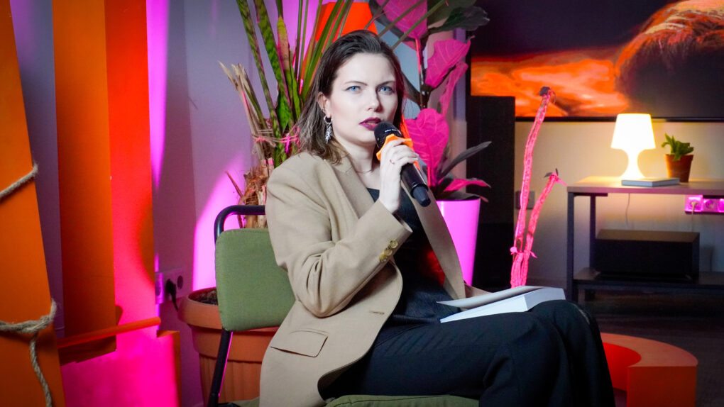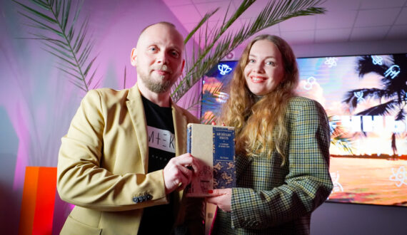 Алексей Черняков представил собравшимся книгу Марии Елифёровой «#Панталоныфракжилет. Что такое языковые заимствования и как они работают», названную в честь строки из «Евгения Онегина» Александра Пушкина.