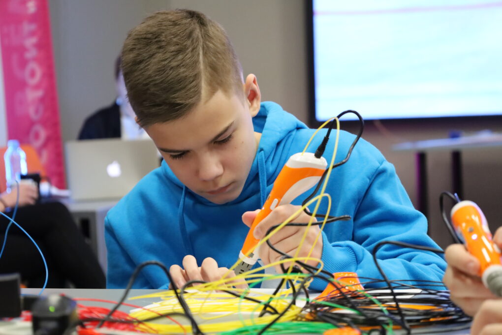 Вечер начался с погружения в «аддитивную мастерскую болельщика», где участники смогли создать уникальную фанатскую атрибутику и изготовить хоккейные клюшки и шайбы с помощью 3D-ручек. Аддитивные технологии (3D-печать) сегодня активно внедряются в профессиональный спорт. Например, современные хоккейные шлемы печатаются на 3D-принтерах с учетом индивидуальной анатомии головы игрока.