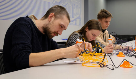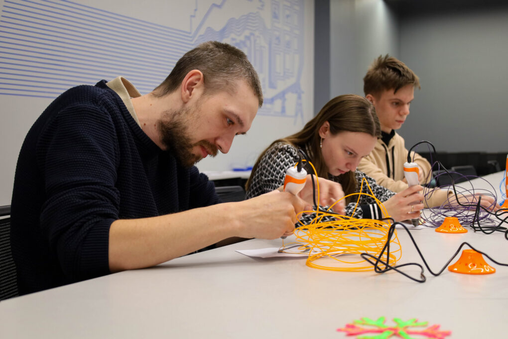 Вечер начался с погружения в «аддитивную мастерскую болельщика», где участники смогли создать уникальную фанатскую атрибутику и изготовить хоккейные клюшки и шайбы с помощью 3D-ручек. Аддитивные технологии (3D-печать) сегодня активно внедряются в профессиональный спорт. Например, современные хоккейные шлемы печатаются на 3D-принтерах с учетом индивидуальной анатомии головы игрока.