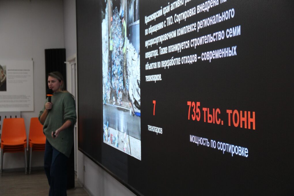 Продолжился вечер выступлением основателя экологического центра «Круговорот», председателя регионального отделения движения «Экосистема», члена общественного совета при Министерстве экологии Красноярского края Анастасии Новиковой. Она рассказала, как организована переработка отходов в Красноярском крае, каких видов вторичного сырья сдают больше всего жители Красноярска, а также поделилась планами экологического центра на 2026 год.