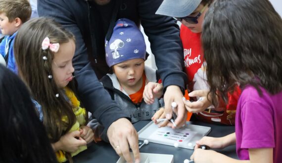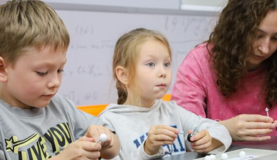 Вечер начался с атомного практикума «Мир больших молекул». Сотрудники ИЦАЭ Ульяновска рассказали гостям центра о том, как устроены органические и неорганические вещества, чем полимеры отличаются от композитов и почему эти материалы стали неотъемлемой частью современного мира.